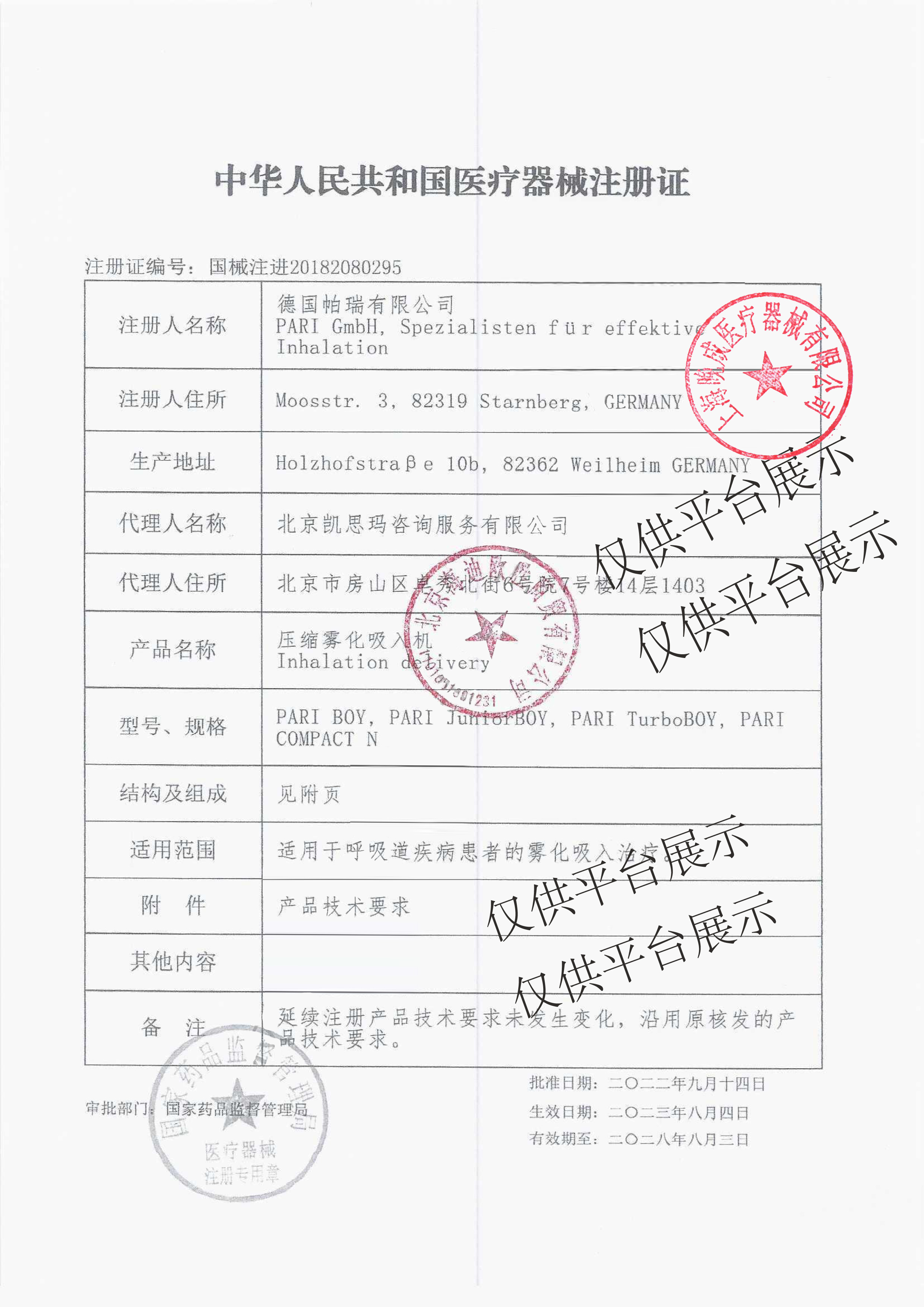 百瑞PARI BOY N 霧化器:1臺(tái)