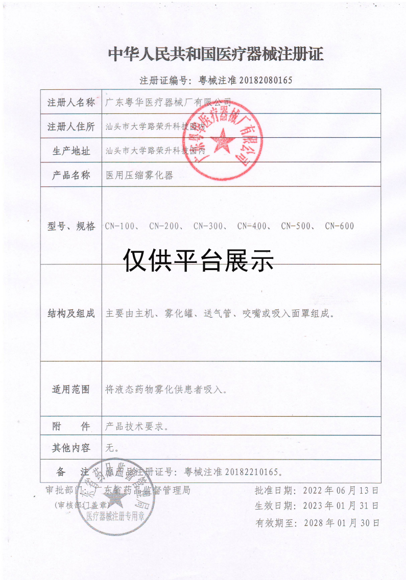 | 產(chǎn)品名稱 : | 粵華醫(yī)用壓縮霧化器CN-500 |